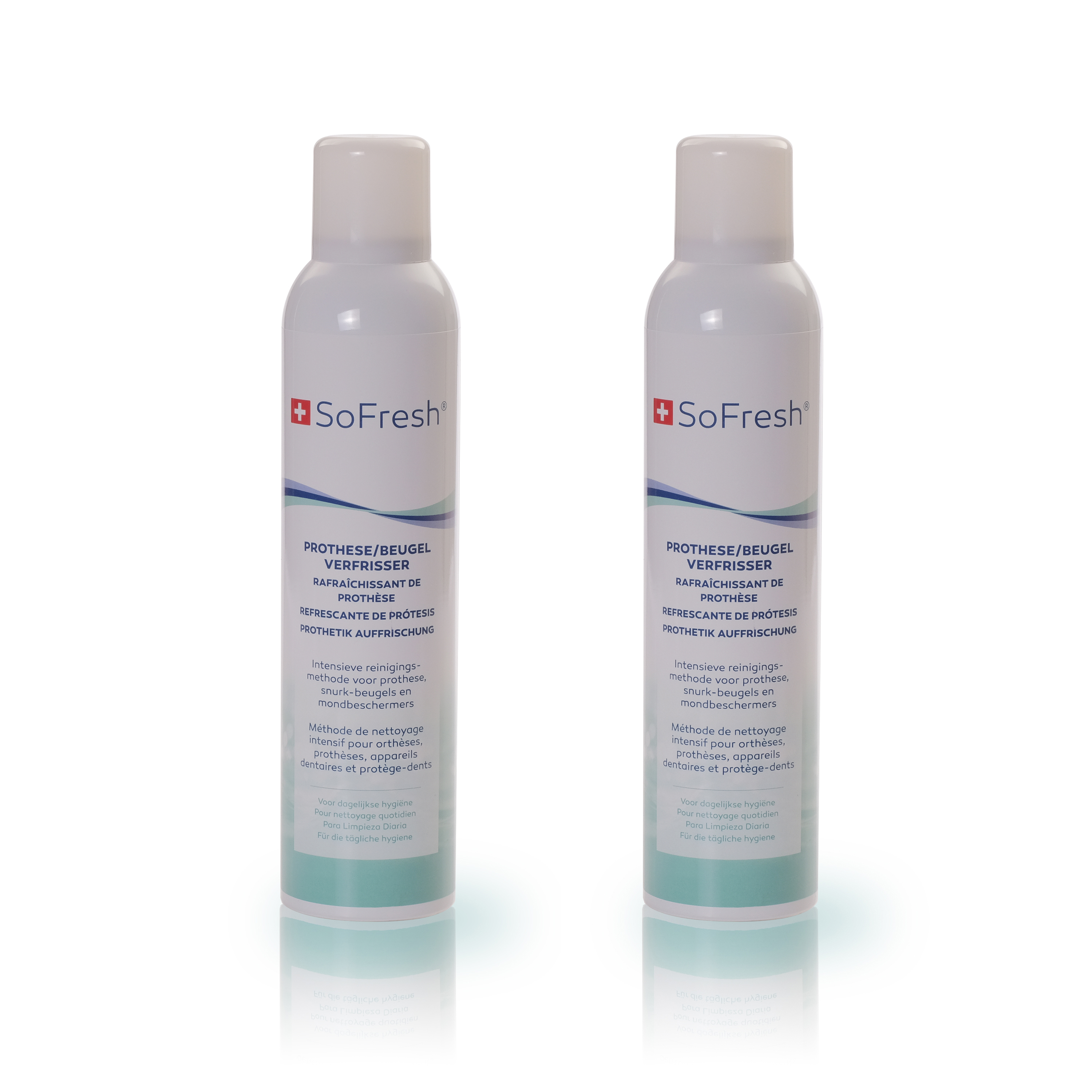 So Fresh Verfrissingsspray voor snurkbeugels, sportbitjes en protheses op biologische basis, welke de geur neutraliseert, zorgt voor een frisse smaak en slijmoplossend werkt. Ook voor overdag!